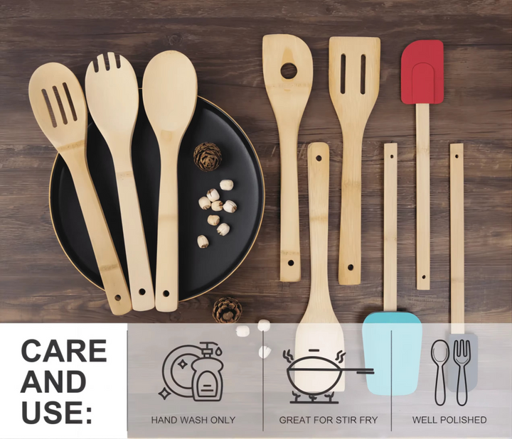 - PERFECT FOR GIFTING: The 9-pack bamboo tools set is a great gift for a family party or neighbor meeting. It's a perfect gift for you to improve your relationship.