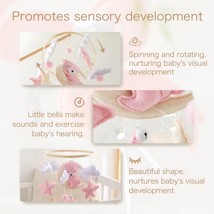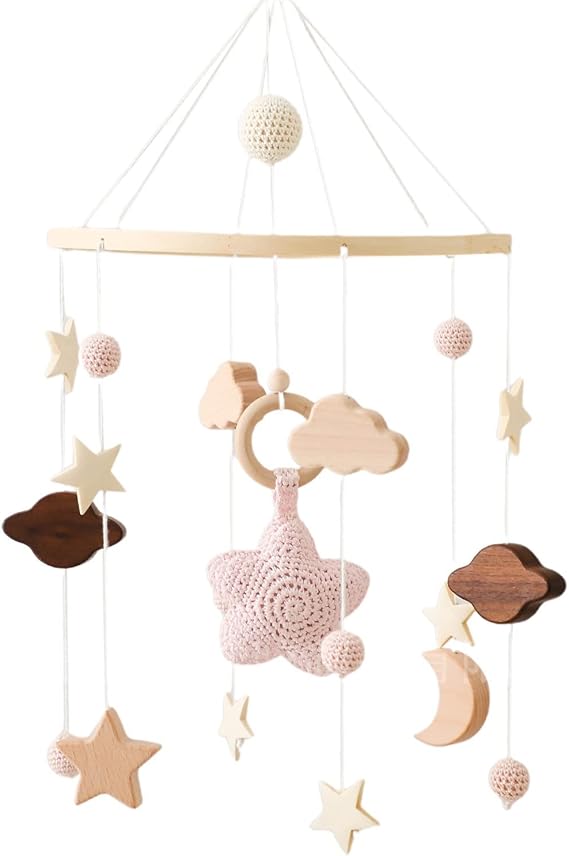 - ✨ PROMOTES HEARING AND VISUAL DEVELOPMENT - Simply Hang the nursery mobile on a baby mobile holder (not included). The natural soothing color provides enough interest & imagination for infants newborns but does not overstimulate. Our baby crib mobile contains bells that will make a pleasant sound when it trembles slightly or when the wind blows. It helps the baby calm down slowly and fall asleep slowly.