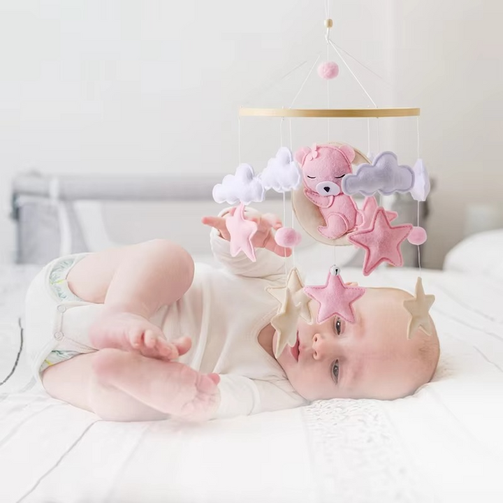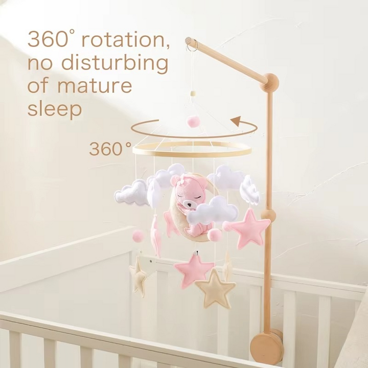 Crib Mobile Baby Wooden Bed Bell Baby Rattles Soft Felt Cartoon Bear Toys Hanger Crib Mobile Bed Bell Wood Toy Bracket Kid Gifts